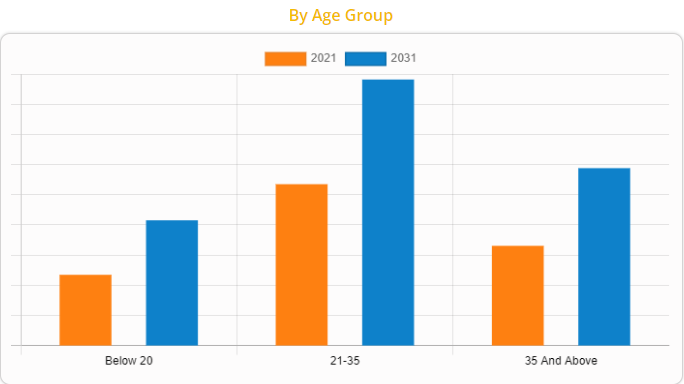 The “Age” segment shows that currently 21-35 year olds dominate the market with ages 35 and above expecting a significant growth in the next phase. All 3 groups on this segment are important with the “below 20” group being the lowest which means we can target there with youth programs. The 21–35-year-old group we should expect some have organic interest as they are currently dominating the market, but we can also expect and help the growth of the “35 and above” since we know this group has growth potential. Our training system is goal specific, and we have a program for all segments.